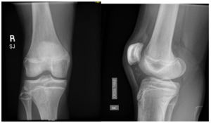 A 15-year-old male weighing 150 pounds and standing 6 ft 1 in tall, with no past medical history, presented to the clinic with buckling, catching and locking of the medial knee. He is a high school athlete who sustained a non-contact injury involving knee flexion combined with external rotation during a football game. He immediately reported a pop in the knee followed by stiffness and swelling. Clinical examination revealed joint effusion and medial and lateral joint line tenderness, on the inferior pole of the patella and tibial tubercle. Passive range of motion was limited, and both Lachman and McMurray tests were positive. Radiographs confirmed open physes with no evidence of fracture or malalignment., MRI demonstrated bony contusions and a substantial ligament injury, with a high-grade partial ACL tear, along with questions of peripheral posterior medial meniscus root tearing (Figures 1, 2). Management options were discussed with the patient, and he elected to proceed with surgical fixation. An additional consent was obtained from parental guidance for the possible publication of the surgical technique.