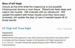 This is a 76-year-old that I just saw this week that had a bump on her thigh annd this is the report (Figure 4).