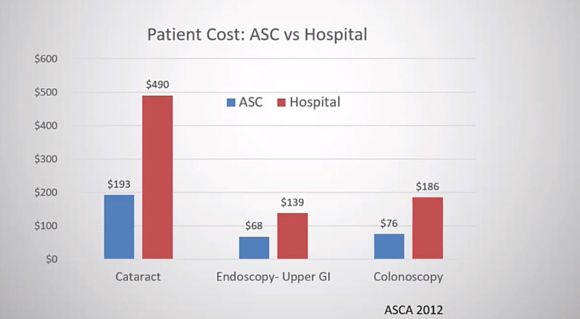 There’s a one third rule, which means when we’re a part of the surgery center, we must do a third of our cases there and also be aware of non-competes. Once you buy into one surgery center, it may be difficult to buy into others because of non-competes. That’s really the way it should be. The surgery center works best when all the partners are invested in doing as many of their cases as they can there. As I said before, the big financial benefit of the surgery center is that it is a lower cost center than a hospital. It’s generally 55 to 58% the cost of doing the same case in a hospital. This leads to savings for healthcare dollars. We can save a lot of Medicare dollars by shifting more of our cases from hospitals to the surgery centers when appropriate. If we’re interested in saving money for the US healthcare system in general, this is probably the number one thing that surgeons can do in order to save money by shifting the site of surgery when possible. As I said before a lower cost center, 55 to 58% compared to the hospital, and the data shows that for things like laminectomy and ACDF, which we do in the surgery center.