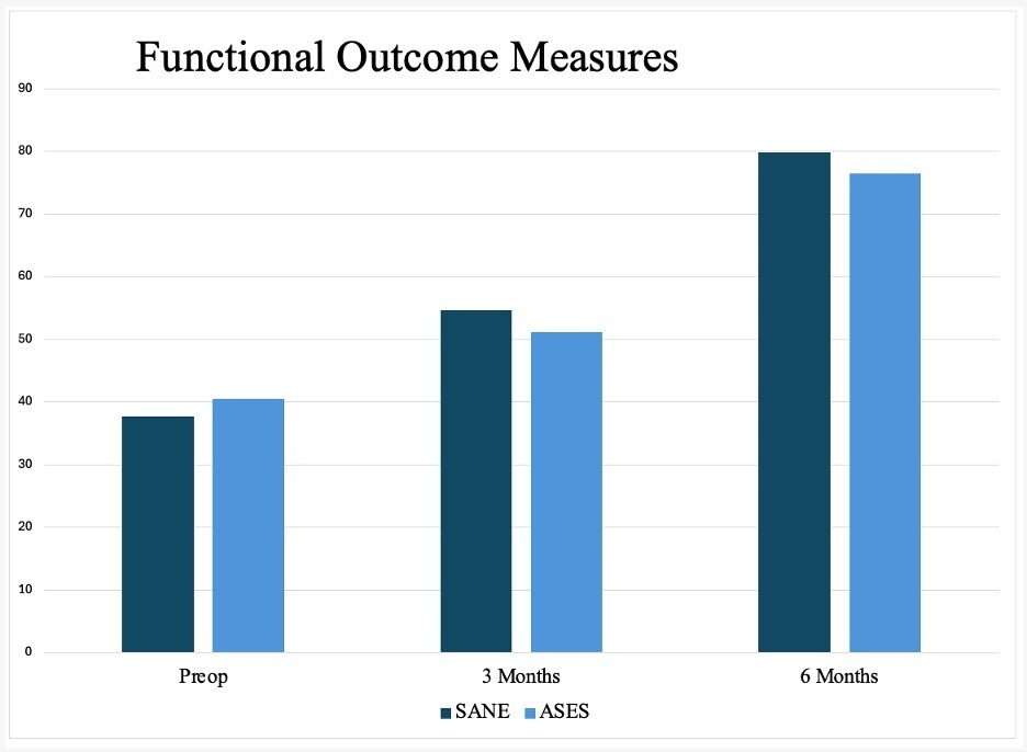 Outcome Measures: Preoperative and postoperative patient-reported outcome measures (PROMs), including the American Shoulder and Elbow Surgeons (ASES) score, Single Assessment Numeric Evaluation (SANE), and Patient-Reported Outcomes Measurement Information System (PROMIS) scores, were collected 3 and 6 months postoperatively.