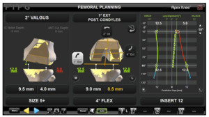 For valgus knees, the senior author (JK) typically plans for a cut of 0 degrees of varus and valgus and 3 degrees of posterior slope. The software also gives an estimate of the size of the tibial tray that will best fit the tibia following the cut.