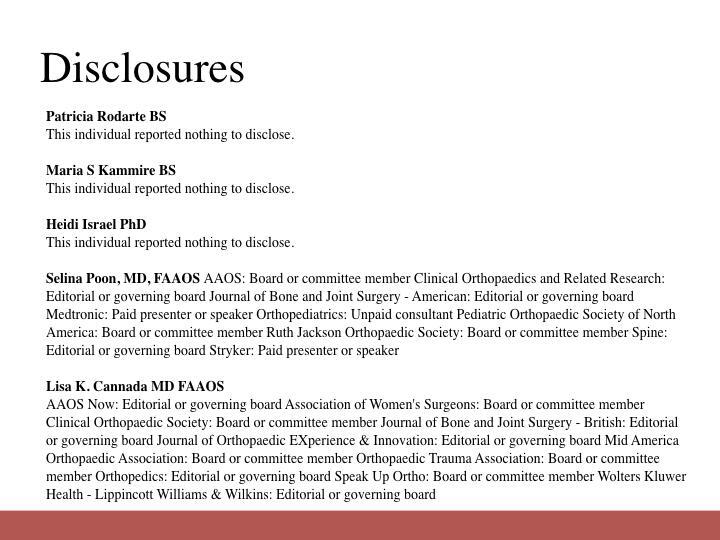We know that orthopaedic surgery is one of the least diverse fields in medicine, where women make up only 8% of practicing orthopaedic surgeons.Studies show that women physicians in general are often reported more often than their male counterparts for the same violation, and often do more administrative work. However, workplace conflict that female physicians encounter within orthopaedic surgery specifically has not been extensively studied.