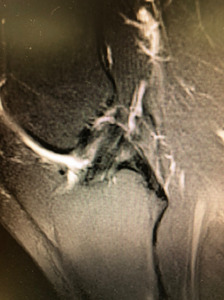 The BEAR procedure blends biology with technique with the idea of restoring native form and function for the ACL. The ability to restore the native ACL fibers and orientation with the BEAR compared to traditional ACL reconstruction has been noted through MRI follow up (Figures 2,3). Early clinical studies demonstrate similar functional hop testing when compared to traditional ACL reconstruction utilizing hamstring autograft (Murray et al. 2019, 2020). Equally as important, BEAR restoration has been shown to be non-inferior to traditional ACL reconstruction. In the first-in-human safety study reported in 2016 by Murray et al examined 2 year outcomes vs ACL reconstruction with hamstring autograft (Murray et al. 2016). These results demonstrated non-inferiority in patient-reported outcome scores (International Knee Documentation Committee [IKDC]) or significant differences in anteroposterior (AP) knee laxity between the groups. In 2020 Murray et al reported the outcome results of their Level I randomized-controlled trial examining a similar cohort of patients (Murray et al. 2020). Non-inferiority criteria were met for both the IKDC Subjective Score (BEAR, 88.9 points; ACLR, 84.8 points; mean difference, 4.1 points [95% CI, –1.5 to 9.7]) and the side-to-side difference in AP knee laxity (BEAR, 1.61 mm; ACLR, 1.77 mm; mean difference, –0.15 mm [95% CI, –1.48 to 1.17]). The BEAR group had a significantly higher mean hamstring muscle strength index than the ACLR group at 2 years (98.2% vs 63.2%; P < .001). In regards to ACL re-tears, the BEAR group reported a 14% re-tear which is well within currently acceptable range for ACL reconstruction of 10% - 28% (Astur et al. 2017; Cordasco et al. 2019; Ho et al. 2018). It furthermore is much more acceptable than the 49% failure rate that has been reported in young athletic patients (Gagliardi et al. 2019b). Interestingly, in the subgroup of BEAR ACL re-tears who were converted to traditional ACL reconstruction, their IKDC Subjective Score at 2 years similar to that of patients who had only a primary ACLR (85.5 vs 84.8 points). Furthermore, their AP knee laxity values were also similar (1.4 vs 1.8 mm). These findings are in contrast to revision of ACL reconstruction patients who often show poorer subjective and laxity scores after primary failure (Wright et al. 2011).
