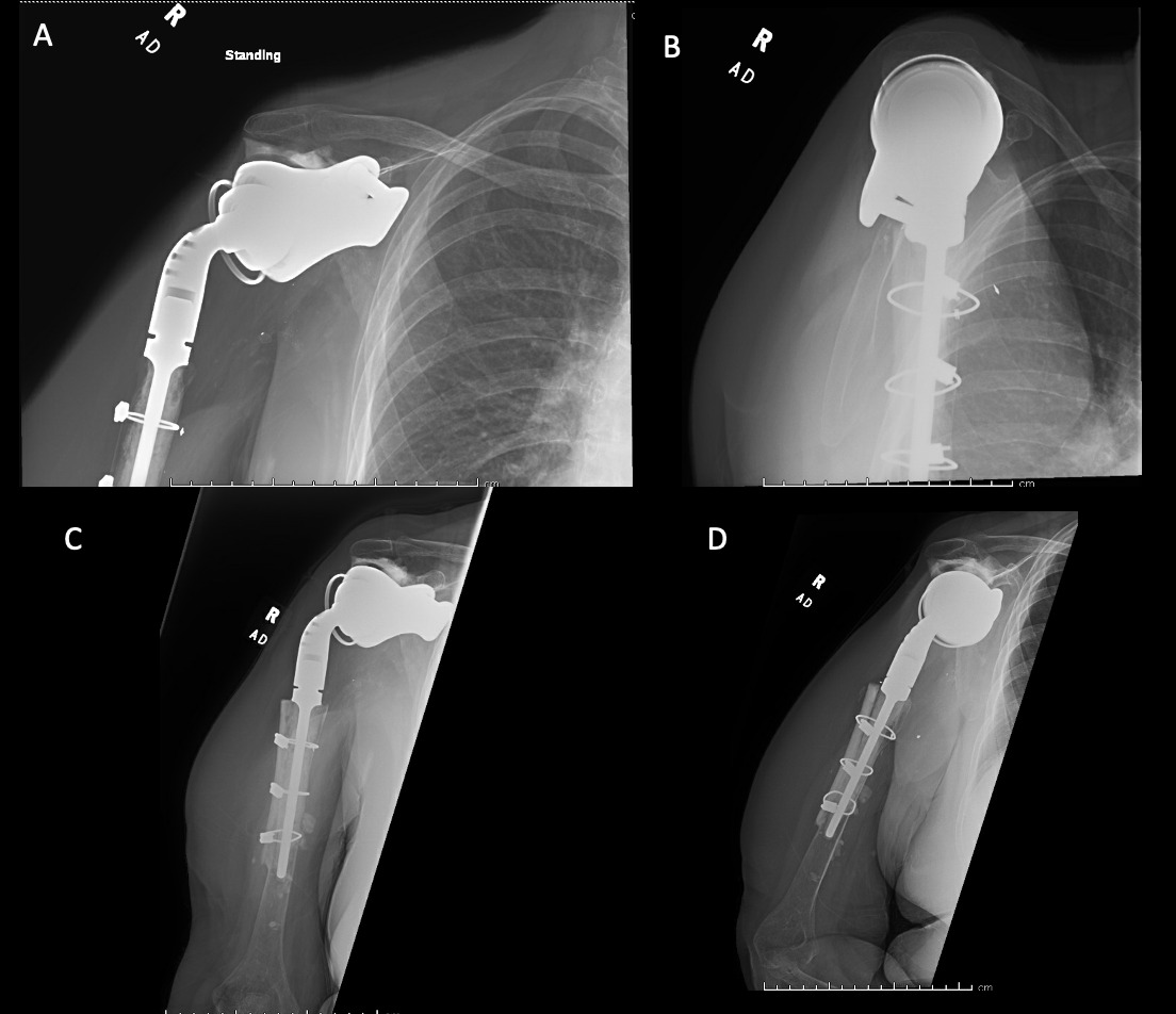 Failure of total shoulder arthroplasty can result from infection, instability, loosening, and soft tissue deficiencies (Chalmers et al. 2019). Periprosthetic joint infection (PJI) is a particularly devastating cause of shoulder arthroplasty failure and often difficult to salvage. Treatment may include debridement, single stage revision, two-stage revision, arthrodesis, chronic antibiotic suppression, placement of permanent spacer, and amputation (Bonnevialle et al. 2017). When revision reconstruction is to be considered, conventional options include hemi-arthroplasty, osteoarticular allograft, and allograft prosthetic composite (APC), each of which has its own limitations and risks.