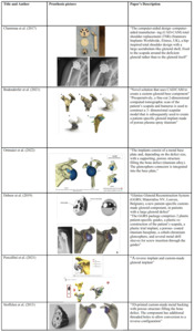 Other custom shoulder endoprosthetic designs have been reported to address substantial glenoid bone loss that leaves inadequate glenoid on which to base the scapular reconstruction similar to the reported two cases (Table 1). In the design that is most similar to the current report, Chaama et al. described a custom total hip inspired, large acetabular like glenoid shell affixed to the scapula around a deficient glenoid, but, instead of flanges as in this reported design, relied upon screw fixation directly through the shell into the remaining scapula (Table 2) (Chammaa, Uri, and Lambert 2017). Their design showed promising clinical improvement in patients with severe glenoid deficiencies in which decreased glenoid bone stock limits options for direct attachment of an endoprosthesis to the glenoid itself and allows for attachment directly to the scapula around the deficient glenoid. Revision was necessary in 6 of 37 patients (16%) at mean 60 months follow-up (Chammaa, Uri, and Lambert 2017).